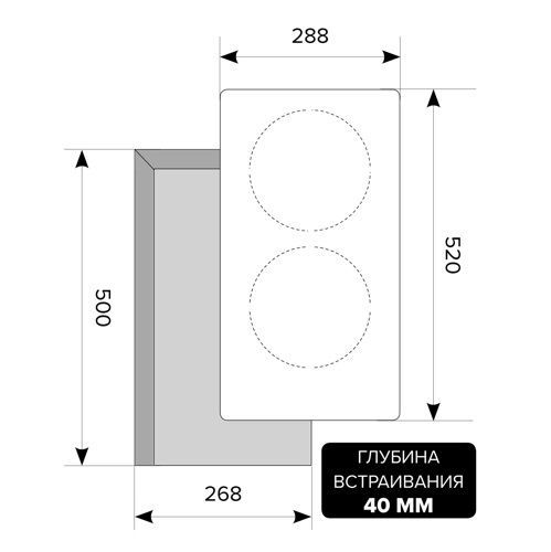 Глубина встраивания: 500 мм.