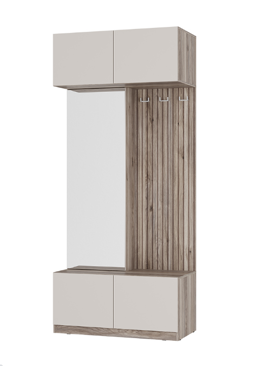 Стильная и компактная прихожая «Урбан» с фотопечатью – это оптимальное сочетание открытых и закрытых зон для хранения верхней одежды, головных уборов, обуви и аксессуаров.