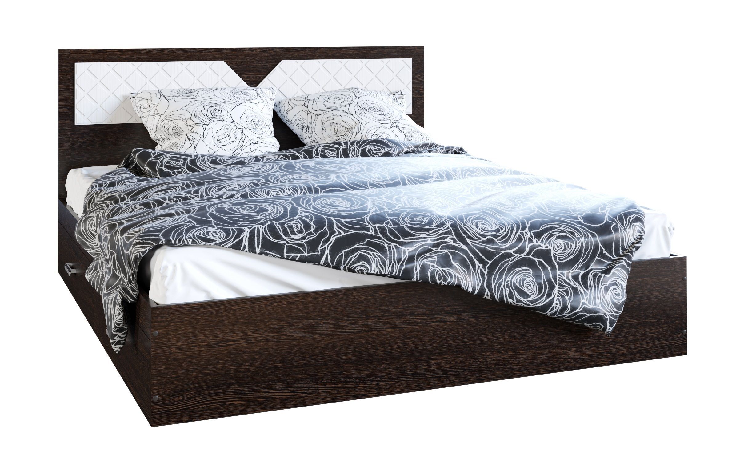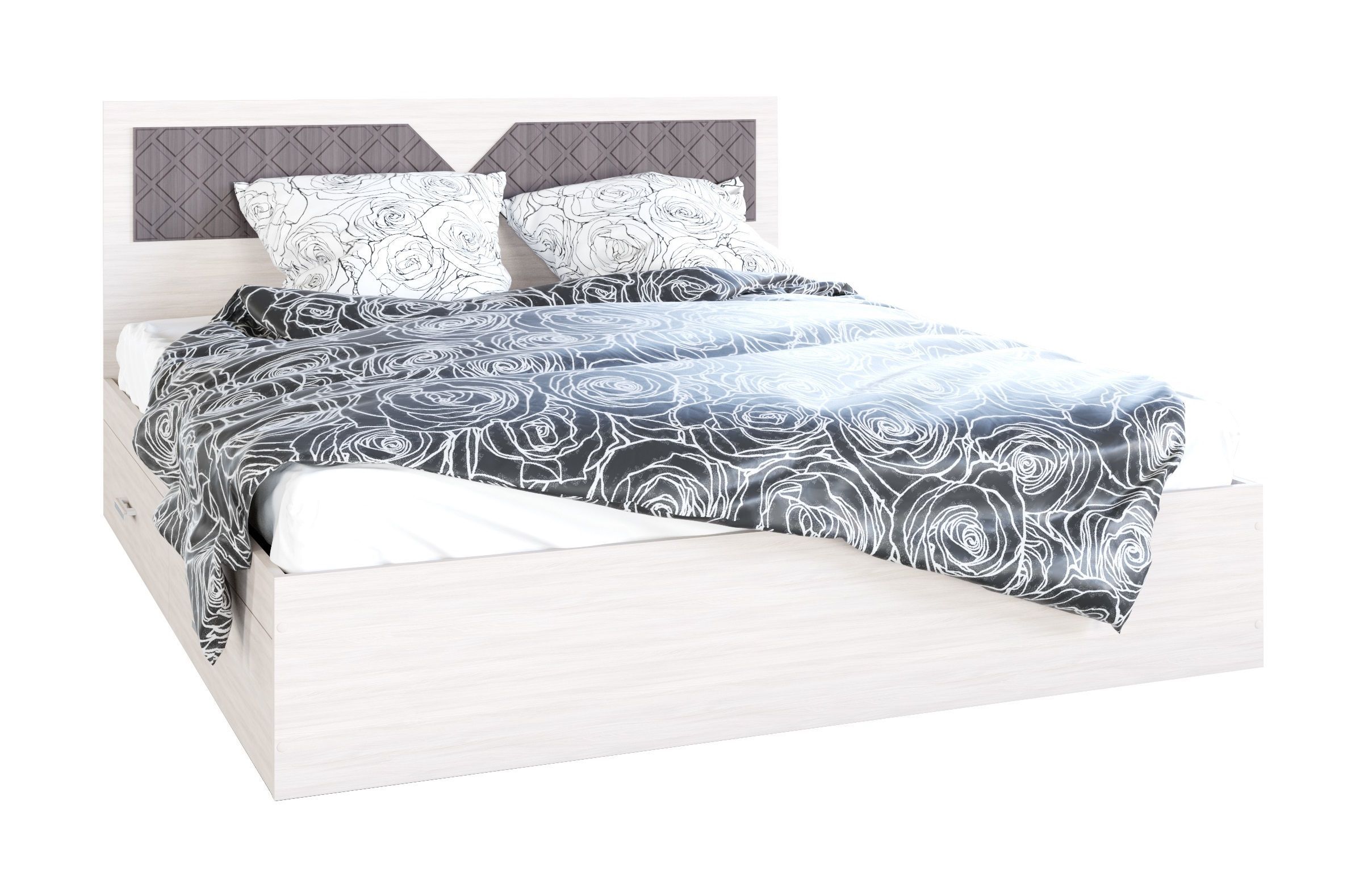 Кровать подойдет практически для любого стилевого решения вашей спальни - от классического дизайна до современного. Каркас кровати с одной стороны дополнен ящиками, ящиками для постельного белья, текстиля.