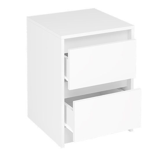 Лицевая фурнитура на тумбе отсутствует. Ящики открываются с помощью захвата рукой.